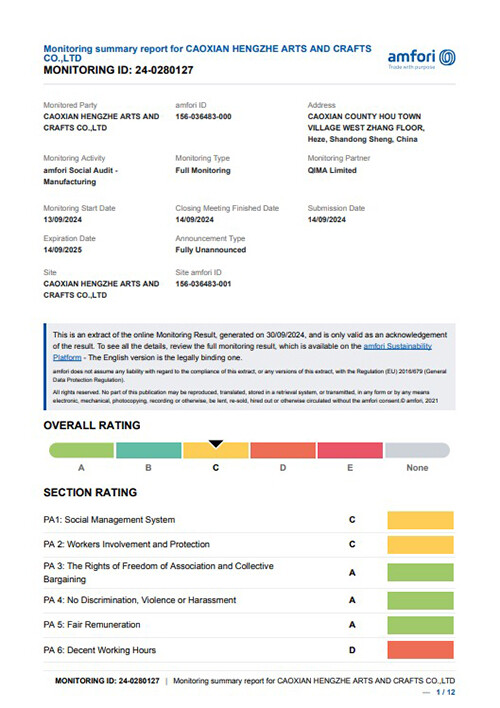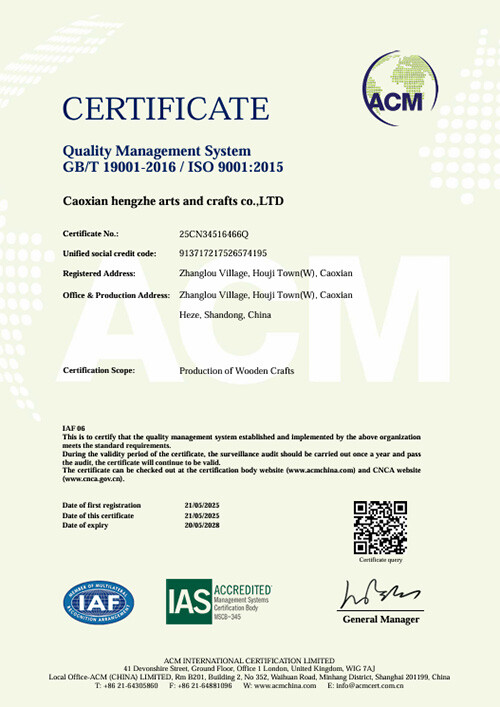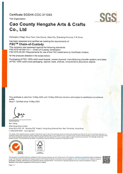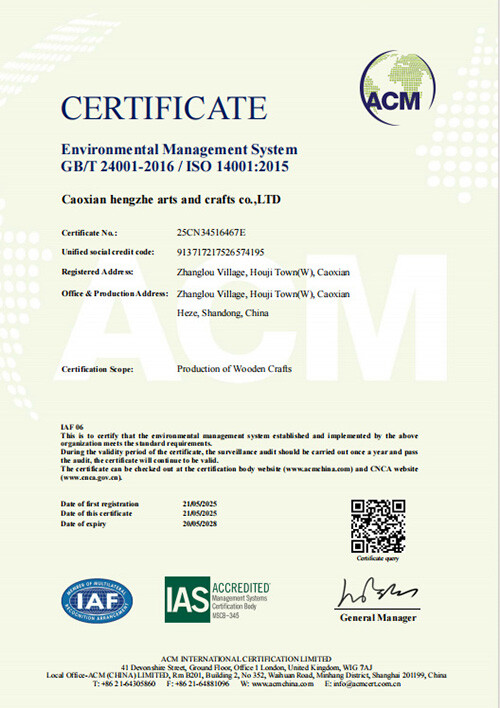 CAOXIAN HENGZHE ARTS AND CRAFTS CO.,LTD. established on July 18, 2003, is a professional wood products manufacturer. Our company is located in Cao County, Heze City, Shandong Province, known as the hometown of paulownia wood. It covers an area of 30,000 square meters, with the workshop area of 18,340 square meters and over 120 professional employees. Our company has passed multiple certifications including ISO9001, ISO14001, ISO45001, FSC and BSCI.